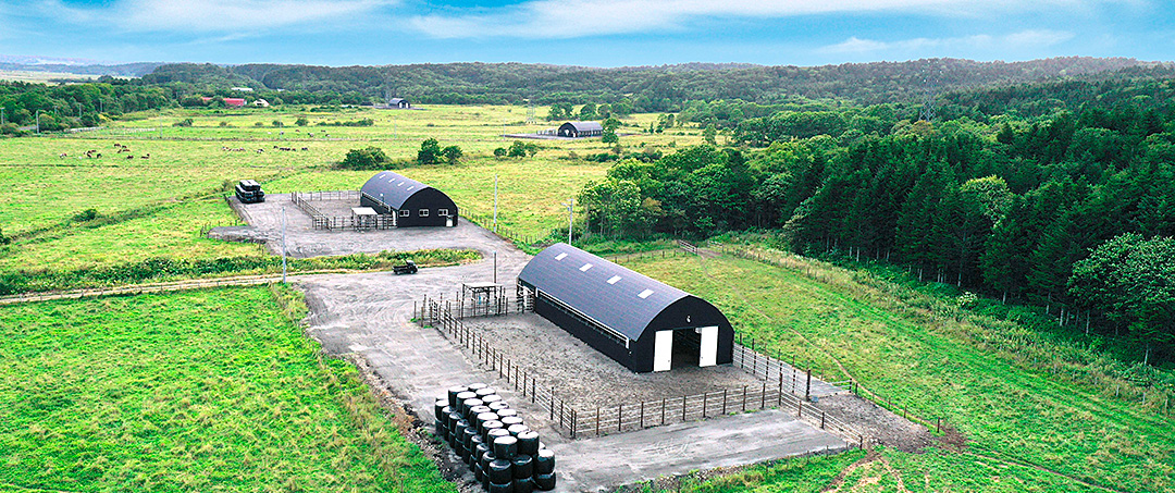 現在、町おこしグループでは全国で2000ha以上の農地を所有し、小師馬商では北海道厚岸町・浜中町の広大な牧場約900haで馬の繁殖・飼育をおこなっております。同じく北海道伊達市では約400ha、熊本県小国町では約300haなど、日本全国で馬の放牧を行なっております。厚岸町の牧場で育てられた当歳馬〜2歳馬を全国の各自社牧場へと陸送し一元管理のもと、当社オリジナルの技術・ノウハウをもとに安全・安心な環境で馬の放牧を行い飼育しております。